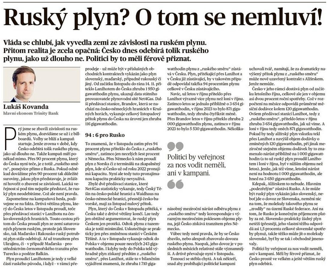 Z PRVNÍ RUKY: Ruský plyn? O tom se nemluví!