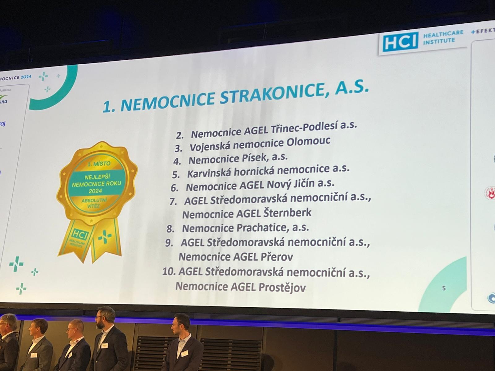Nemocnice Strakonice se stala Nejlepší nemocnicí roku 2024. Obsadila první místo v 19. ročníku celostátního projektu Nejlepší nemocnice roku 2024, který pořádá nezisková organizace HealthCare Institute. V anketě, jako každý rok, byly hodnoceny čtyři oblasti – finanční kondice, míra bezpečnosti a také spokojenost ambulantních i hospitalizovaných pacientů a zaměstnanců nemocnice.