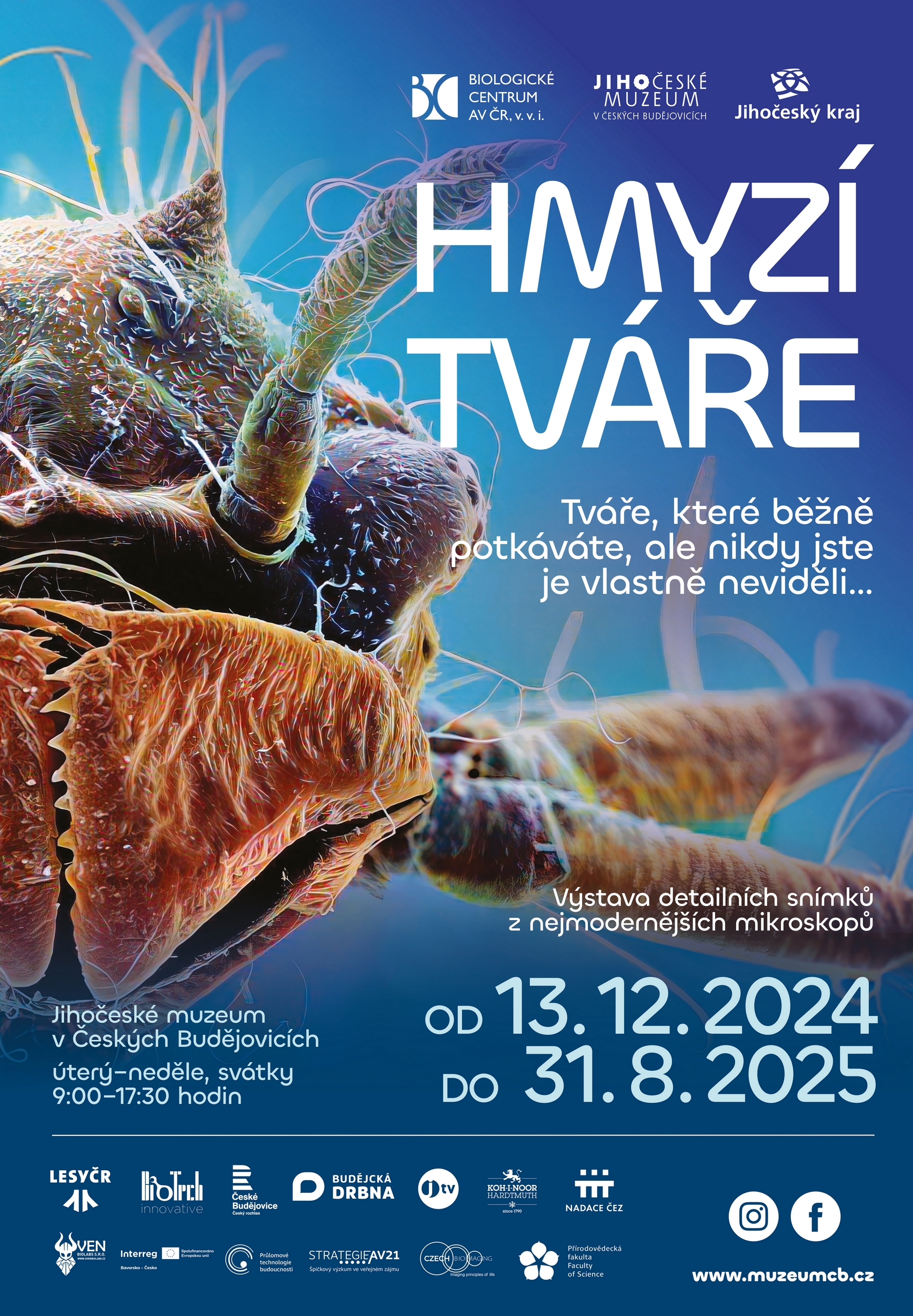 Nenechte si ujít unikátní výstavu detailních snímků hlav hmyzu, které nafotili vědci z Biologického centra Akademie věd ČR pomocí nejmodernějších elektronových a optických mikroskopů v České republice. Výstava vás povede cestou od zástupců evolučně nejstarších skupin hmyzu, jejichž předci žili už v prvohorách, až po ty vývojově nejmladší. Prostřednictvím úchvatných fotografií můžete nahlédnout do tajů hmyzího mikrosvěta. Výstava nejen oslavuje nesmírnou rozmanitost a estetickou jedinečnost hmyzu, ale také upozorňuje na jeho zásadní roli v ekosystémech a nutnost jeho ochrany.