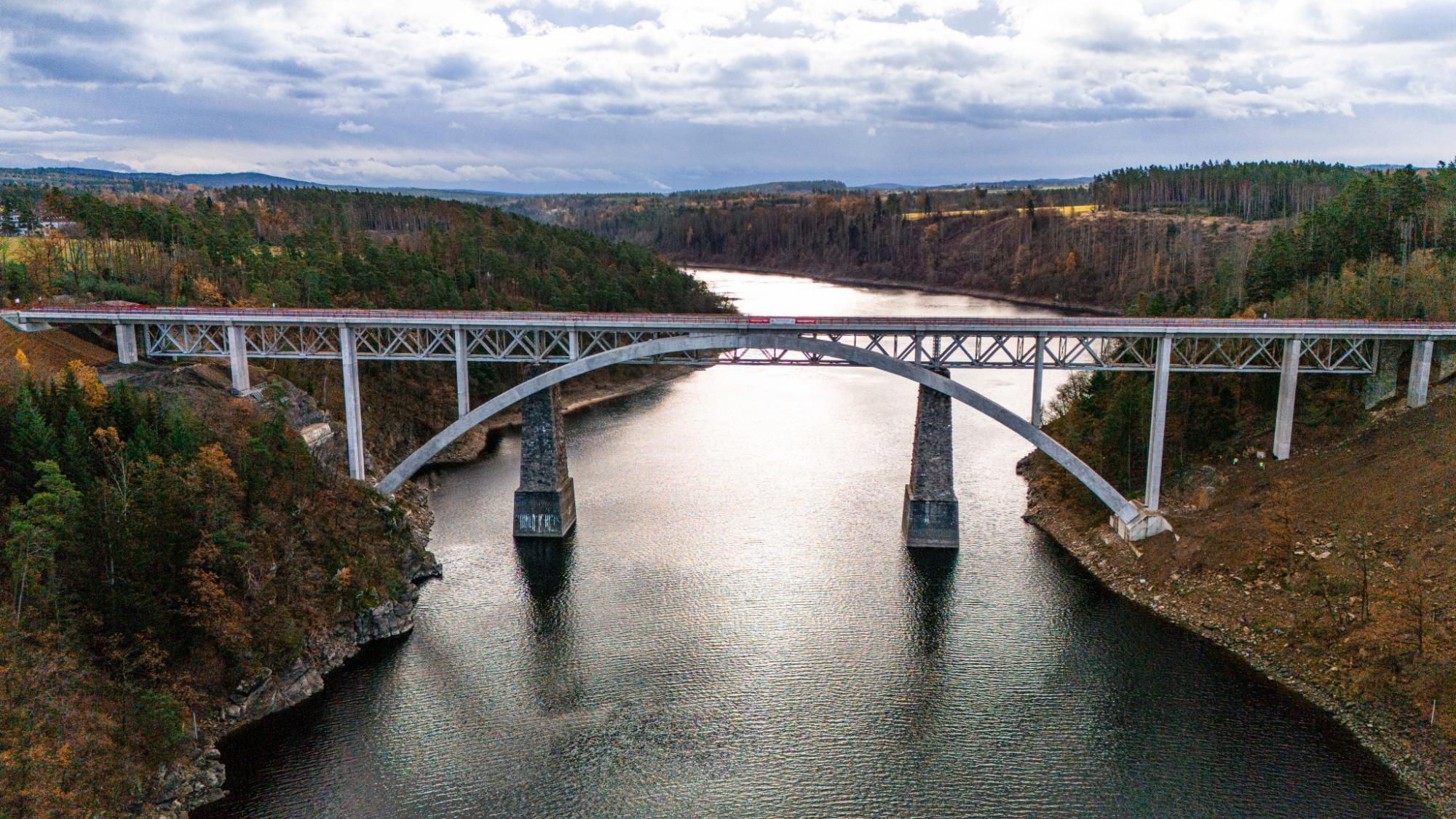 JIŽNÍ ČECHY: Unikátní most překlenul orlickou přehradu. Moderní vlaky nyní zrychlí dopravu z Tábora do Písku