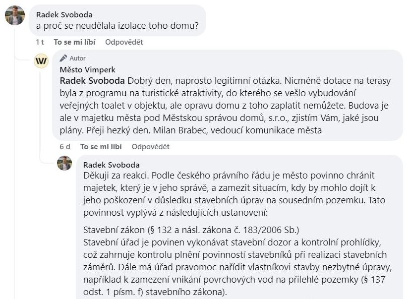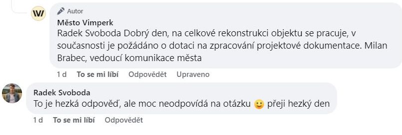 ad Facebookový profil Města Vimperk