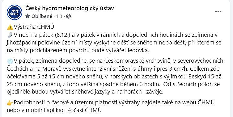 ČESKÝ HYDROMETEOROLOGICKÝ ÚSTAV: Výstraha
