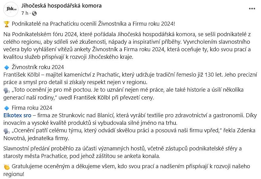 AKTUÁLNĚ: Podnikatelé na Prachaticku ocenili Živnostníka a Firmu roku 2024