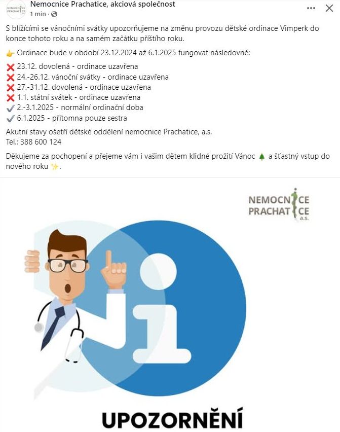 NAŠE MĚSTO VIMPERK: Upozornění Nemocnice Prachatice