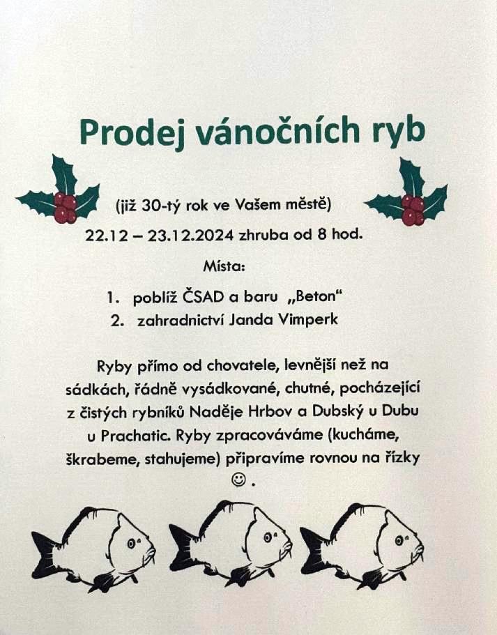 NAŠE MĚSTO VIMPERK: Prodej vánočních ryb