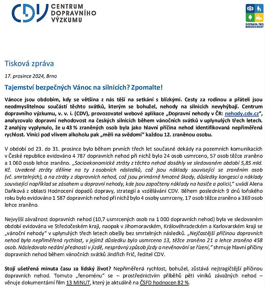Z PRVNÍ RUKY: Tajemství bezpečných Vánoc na silnicích? Zpomalte!