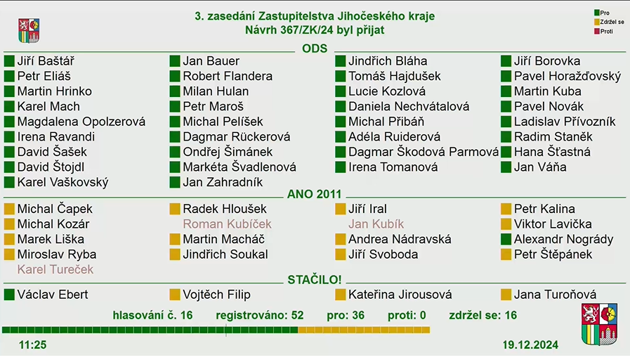 Krajské zastupitelstvo schválilo rozpočet Jihočeského kraje na rok 2025. Rozpočet předpokládá výdaje 29,6 miliardy korun a příjmy 28 miliard korun. Zhruba dvě třetiny příjmů představují prostředky ze státního rozpočtu na platy učitelů ve středních školách a zabezpečení provozu sociálních zařízení. Zastupitelstvo tak fakticky rozhoduje o užití cca 11 miliard korun.