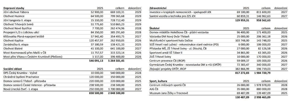 JIŽNÍ ČECHY: Rozpočet 2025: Jihočeský kraj plánuje historicky rekordní investice