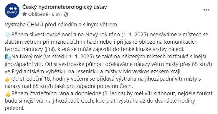 AKTUÁLNĚ: Výstraha meteorologů
