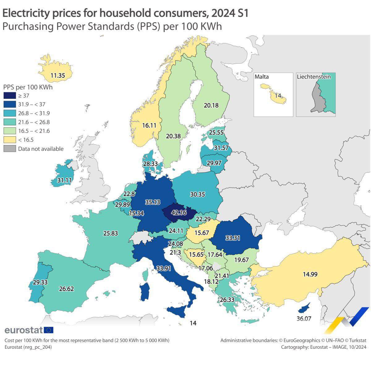 JAROSLAV ŠTEFEC: Zajímavá mapa cen elektřiny napříč EU v roce 2024. Na to, že jsme čistí vývozci …