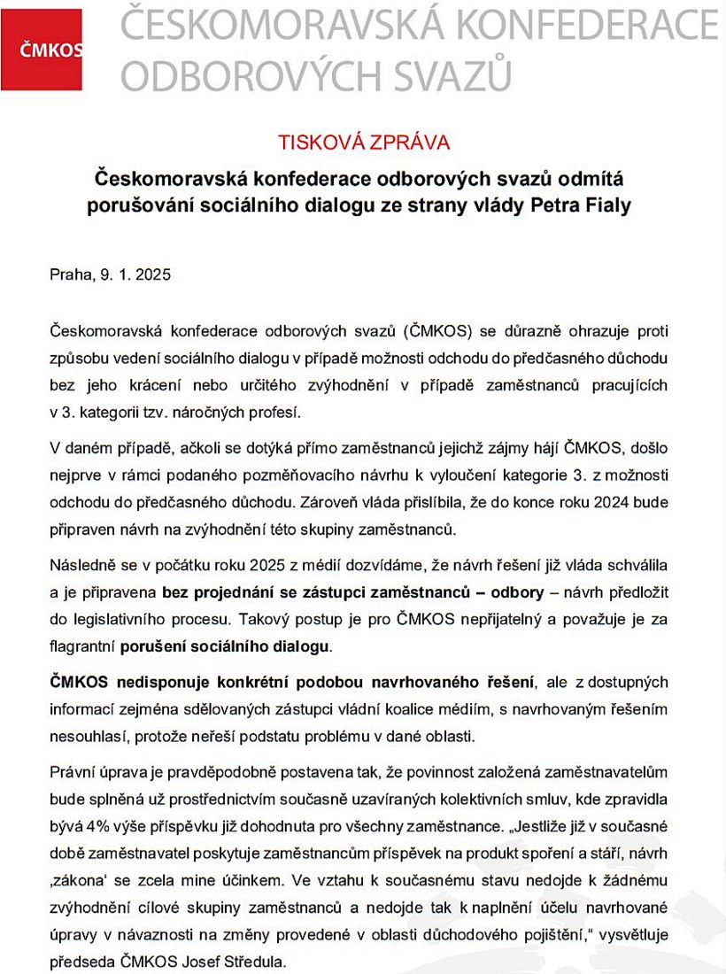 Z PRVNÍ RUKY: ČMKOS odmítá porušování sociálního dialogu ze strany vlády Petra Fialy
