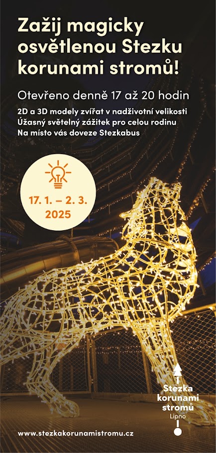 Jestli milujete světýlka, pohádkové prostředí a atmosféru, která přímo láká k zachycení úžasné fotky na památku, připravte se na neopakovatelný zážitek. Od 17. ledna do 2. března se Stezka korunami stromů na Lipně promění ve světelný ráj. Na návštěvníky čeká magicky osvětlená cesta vzhůru, nasvětlená zákoutí, 2D a 3D modely svítících zvířátek a mnoho dalších světelných překvapení, která vytvoří nezapomenutelnou atmosféru.