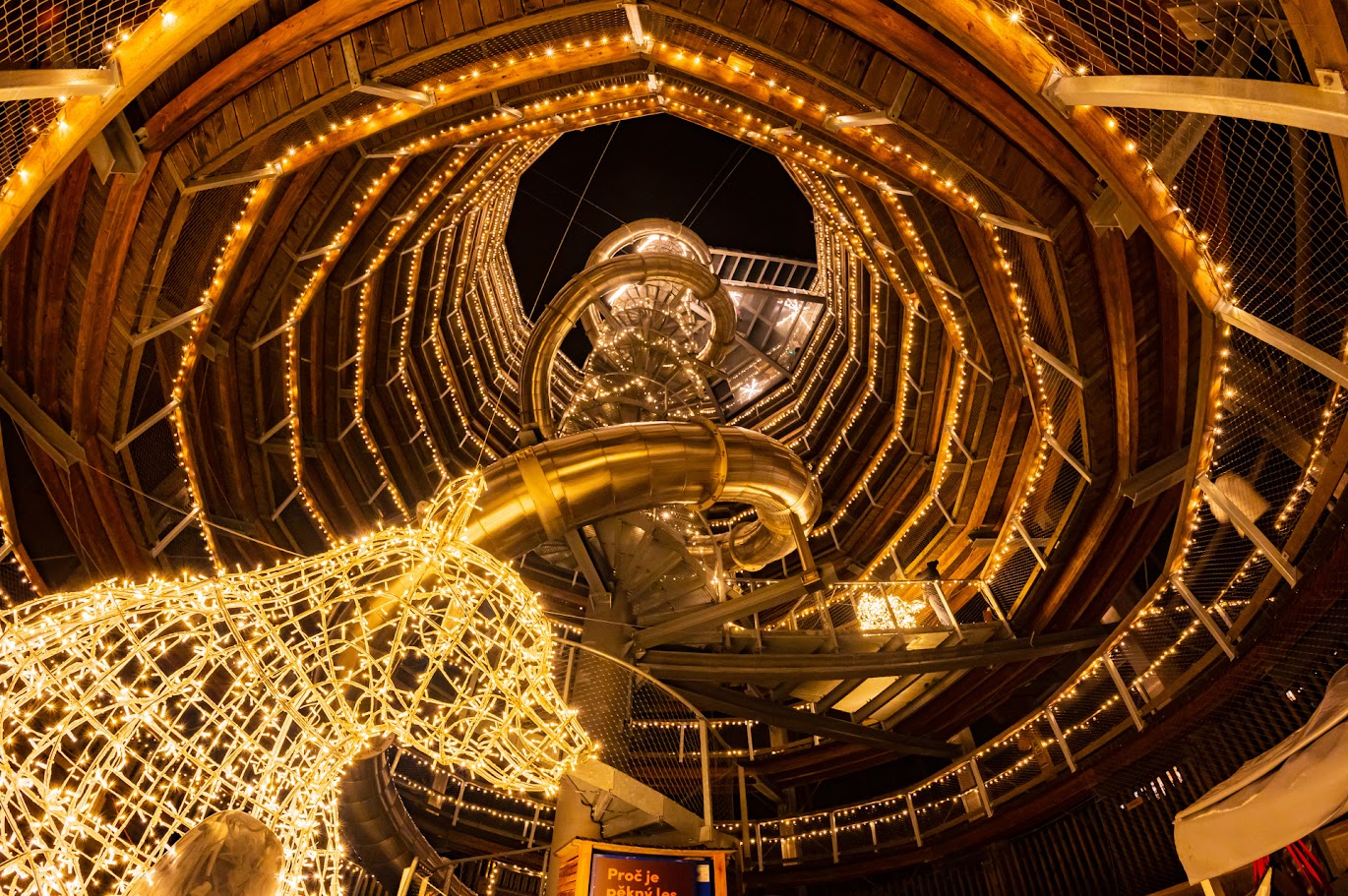 Tyčí se do výšky 40 metrů. Za 12 let existence ji navštívily více než 3 miliony návštěvníků a byla vůbec první svého druhu v České republice. Stezka korunami stromů na Lipně. Nyní na ní návštěvníci zažijí neopakovatelnou a hřejivě světelnou atmosféru.