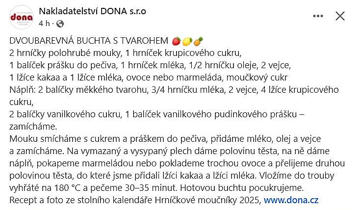RECEPTY Z KUCHYNĚ: Dvoubarevná buchta s tvarohem