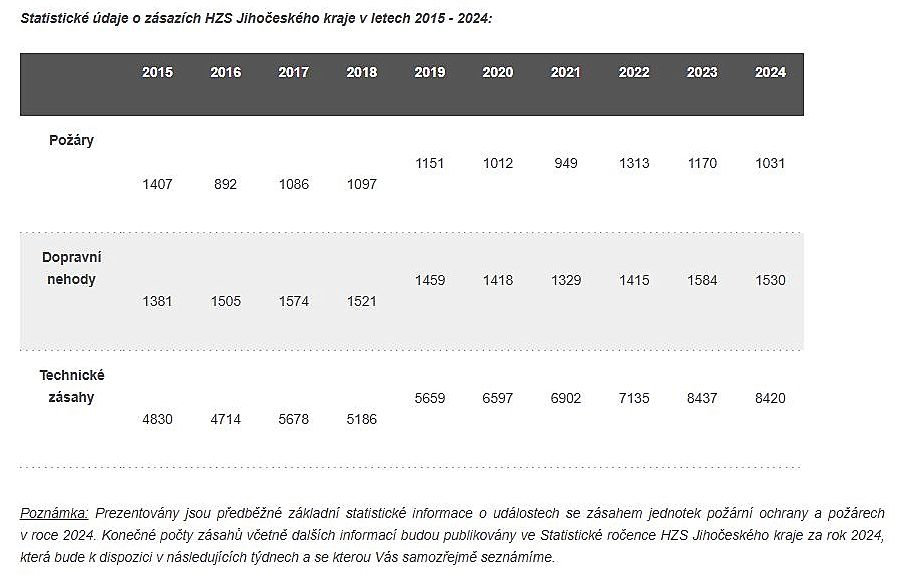 Platí to i pro hasiče v Jihočeském kraji. Každý rok jsme likvidovali následky mimořádných událostí spojených s počasím, každý rok jsme hasili několik velkých požárů, každý rok vyplynou úkoly reagující na situaci ve společnosti. Rok 2024 nebyl co do struktury nijak odlišný.