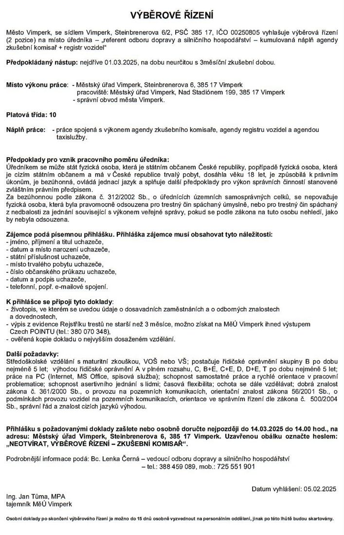 NAŠE MĚSTO VIMPERK: Aktuálně. Radnice hledá nové zkušební komisaře