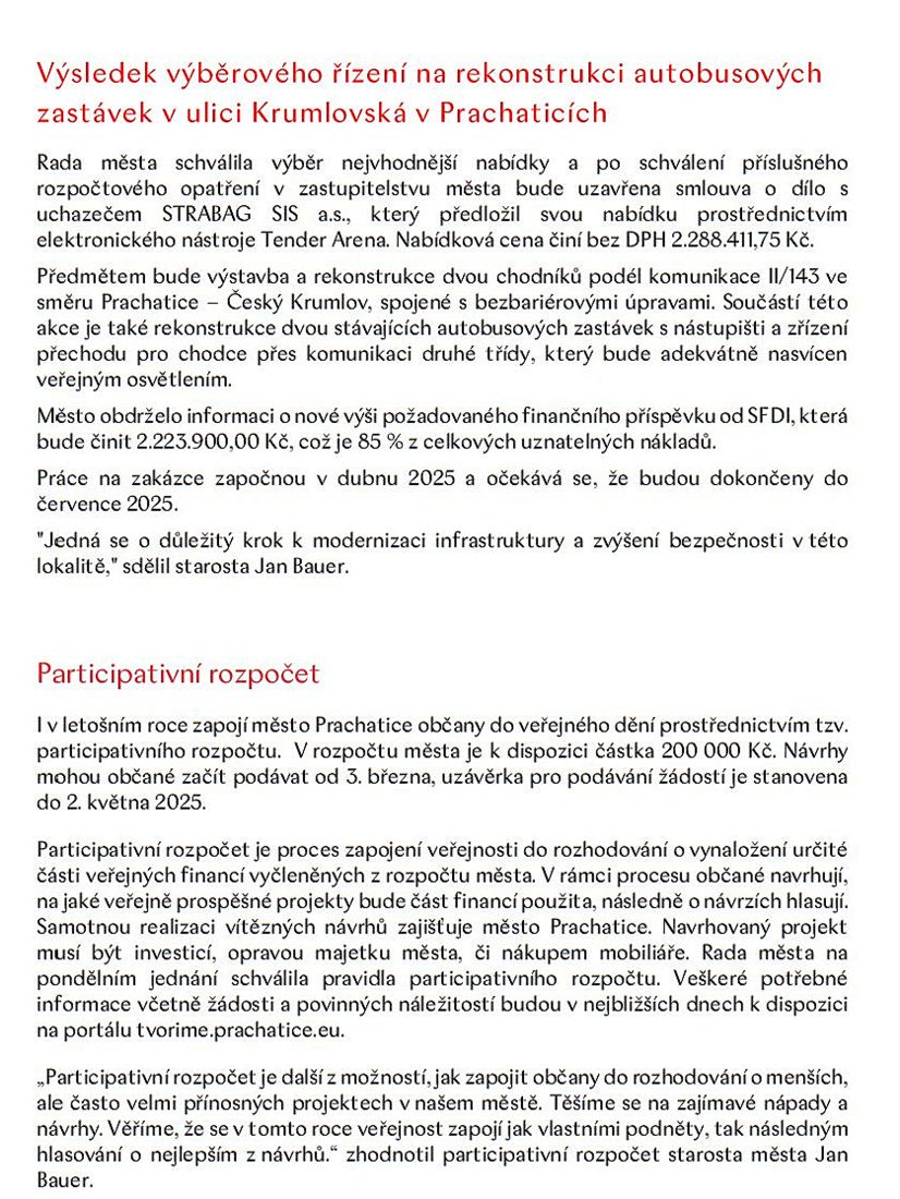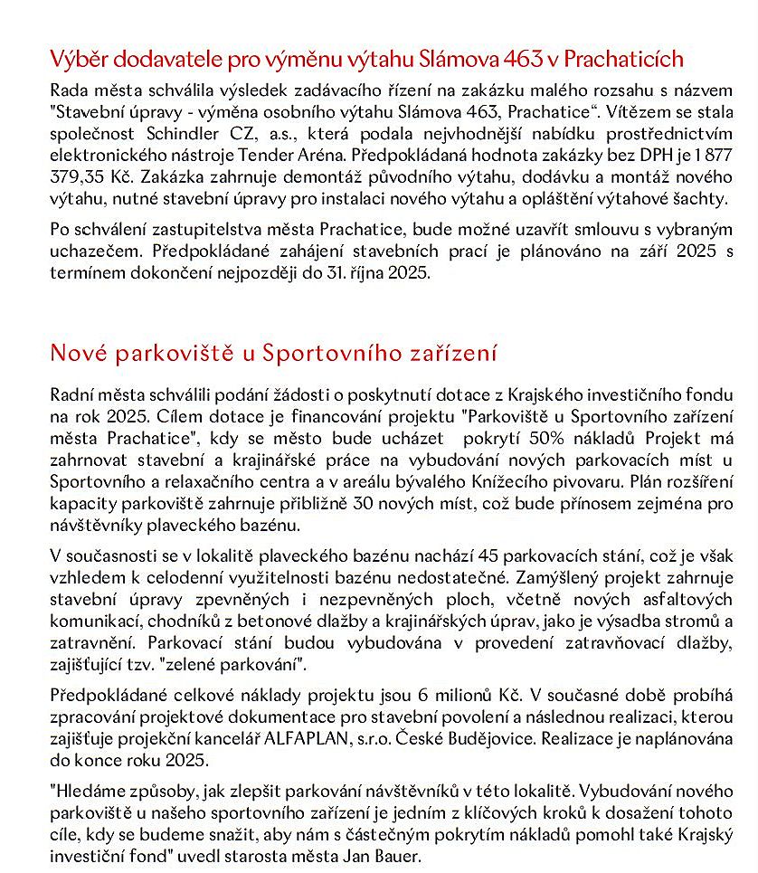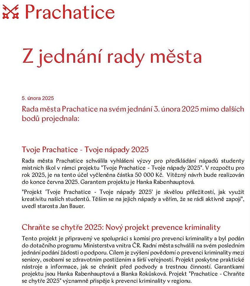 Domů NÁŠ KRAJ JIŽNÍ ČECHY JIŽNÍ ČECHY: Co se děje v Prachaticích. Informace ze schůze městských radních