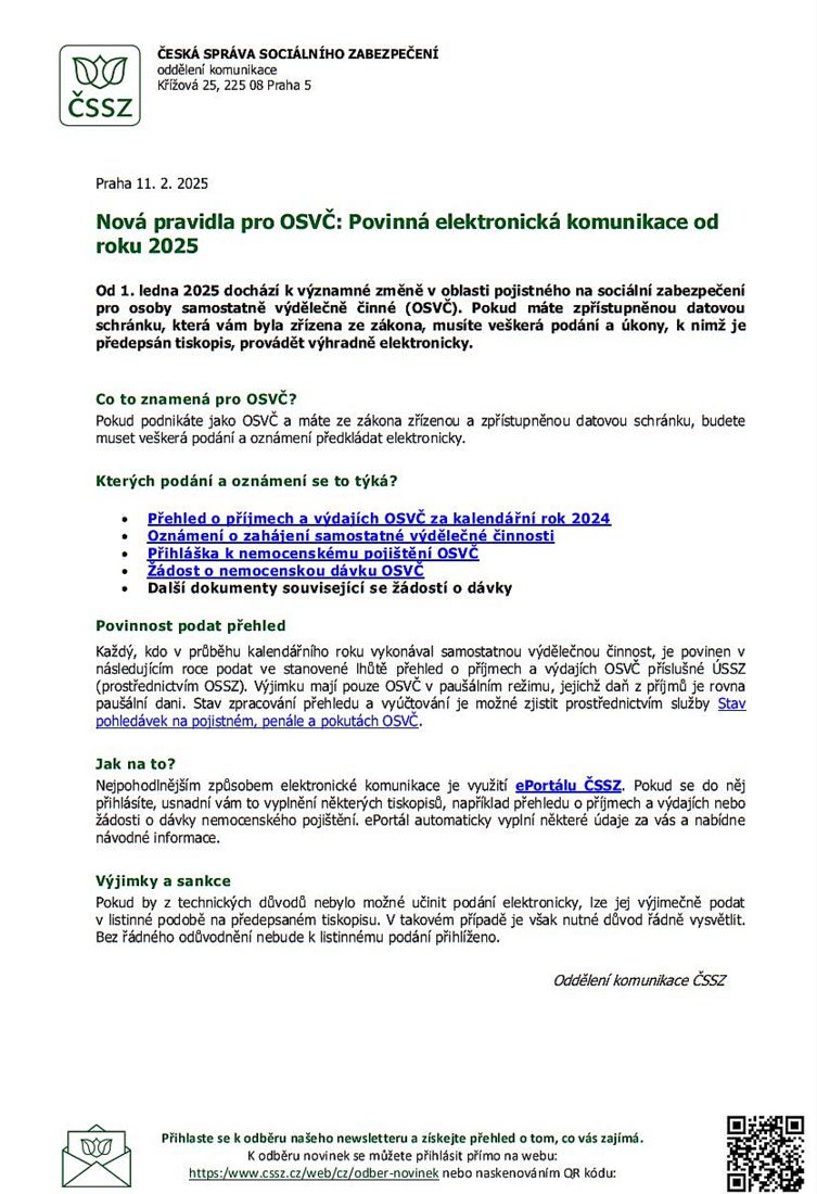 ČESKÁ SPRÁVA SOCIÁLNÍHO ZABEZPEČENÍ: Nová pravidla pro OSVČ