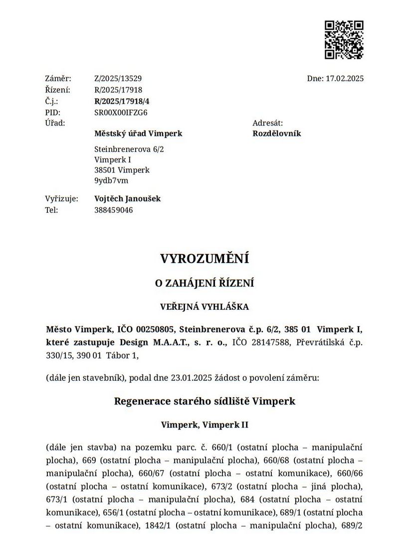 NAŠE MĚSTO VIMPERK: Úřední deska radnice – Regenerace starého sídliště