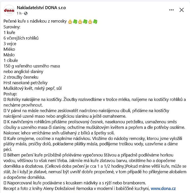 RECEPTY Z KUCHYNĚ: Pečené kuře s nádivkou