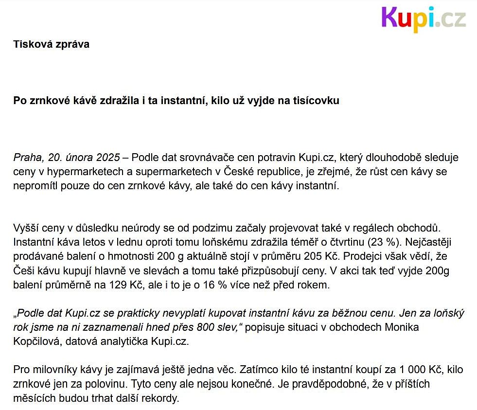 Z PRVNÍ RUKY: Po zrnkové kávě zdražila i ta instantní, kilo už vyjde na tisícovku