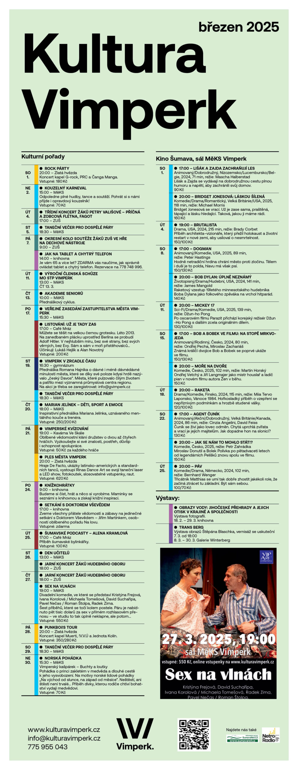 NAŠE MĚSTO VIMPERK: Kultura Vimperk. Přehled programů na měsíc březen