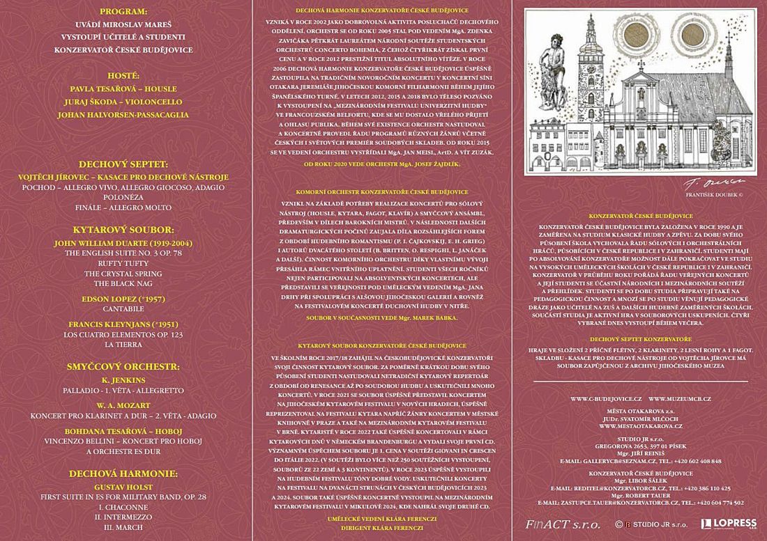 Pro hosty konference i veřejnost se ve středu 12. března 2025 od 19:30 hodin koná v českobudějovické katedrále sv. Mikuláše „Koncert pro město“ v podání Konzervatoře České Budějovice, na kterém vystoupí jako hosté sestry Pavla a Bohdana Tesařovy a Juraj Škoda. V premiéře zazní mj. skladba českobudějovického skladatele Vojtěcha Jírovce „Kasace pro dechové nástroje“, která byla nedávno objevena v archivu Jihočeského muzea.