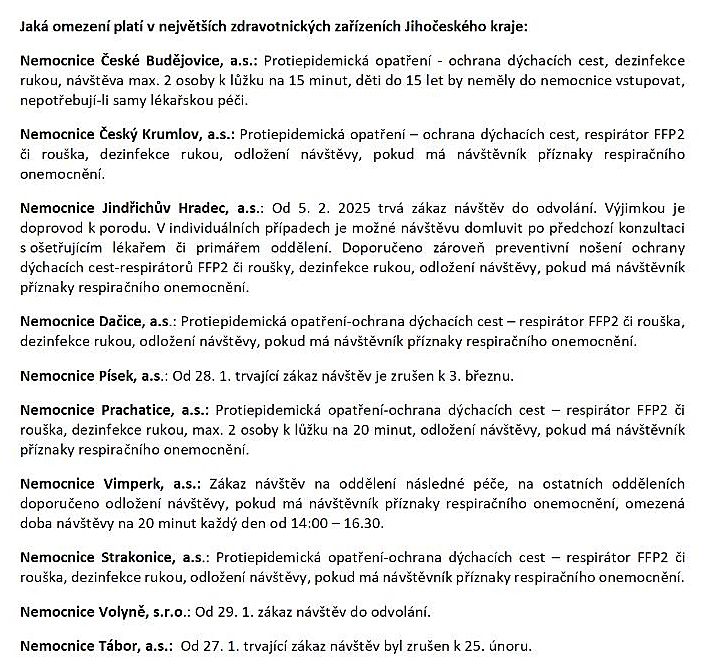 „Od předešlého týdne jsme zaznamenali v kraji velmi mírný nárůst nemocnosti o tři desetiny procenta. Mezi okresy došlo k největšímu poklesu na Táborsku a to o patnáct procent, nejvyšší nárůst jsme zaznamenali na Českobudějovicku. Nemocnost v tomto okrese vzrostla o téměř deset procent, ale stále patří k nejnižším v kraji. Co se týče věkových kategorií, pokles jsme zaznamenali pouze mezi dospělými ve věkové kategorii 25 – 64 let, ve všech ostatních kategoriích nemocnost rostla, nejvíce mezi nejmladšími dětmi,“ uvedla ředitelka Krajské hygienické stanice Jihočeského kraje Kvetoslava Kotrbová.