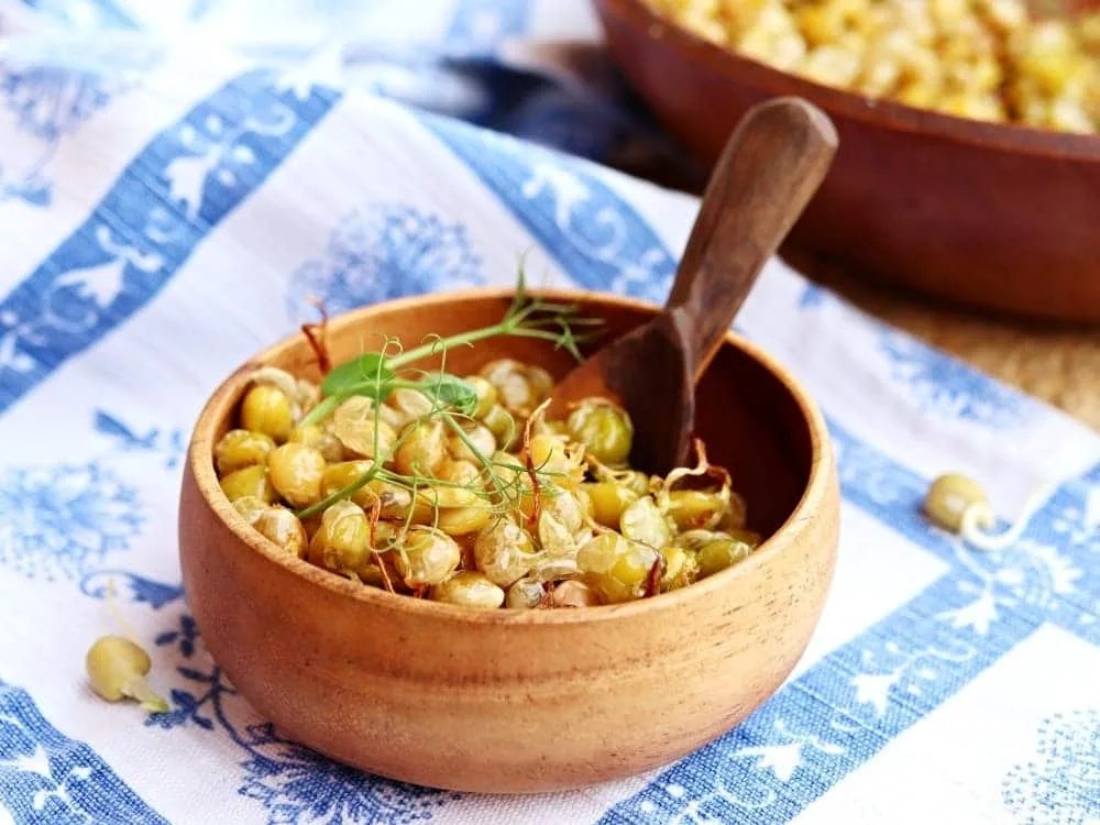 Naklíčený hrách pak necháme oschnmout a vložíme do rozpáleného oleje nebo másla a pražíme až je nasládlý a křupavý. Ke konci hrách osolíme a opepříme nebo ochutíme medem.