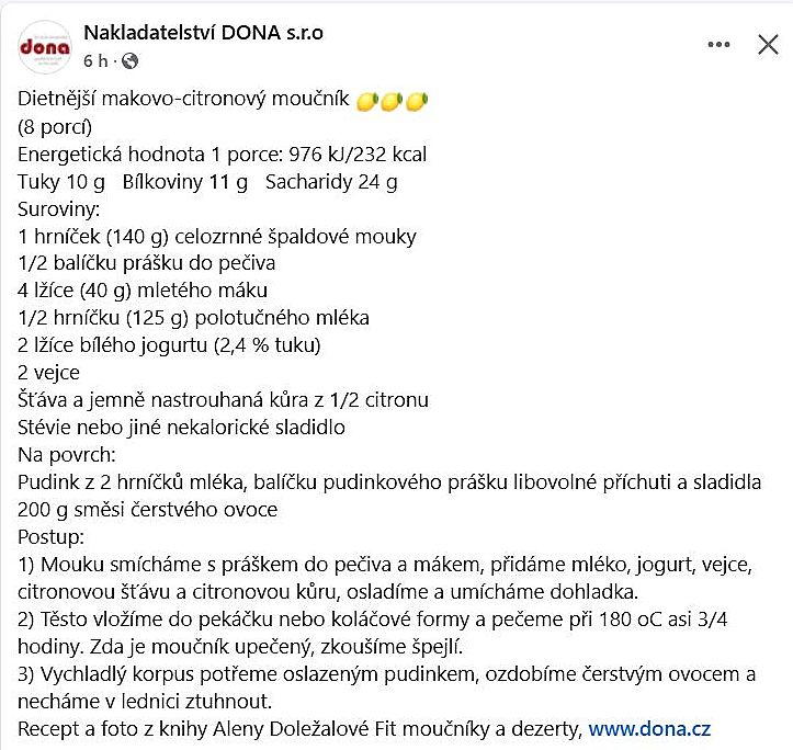 RECEPTY Z KUCHYNĚ: Dietnější moučník