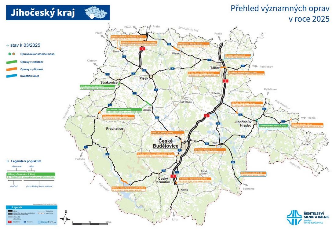 Domů JIHOČESKÝ KRAJ A ČR ŘEDITELSTVÍ SILNIC A DÁLNIC: Aktualizovaná mapa plánovaných oprav v Jihočeském kraji na...