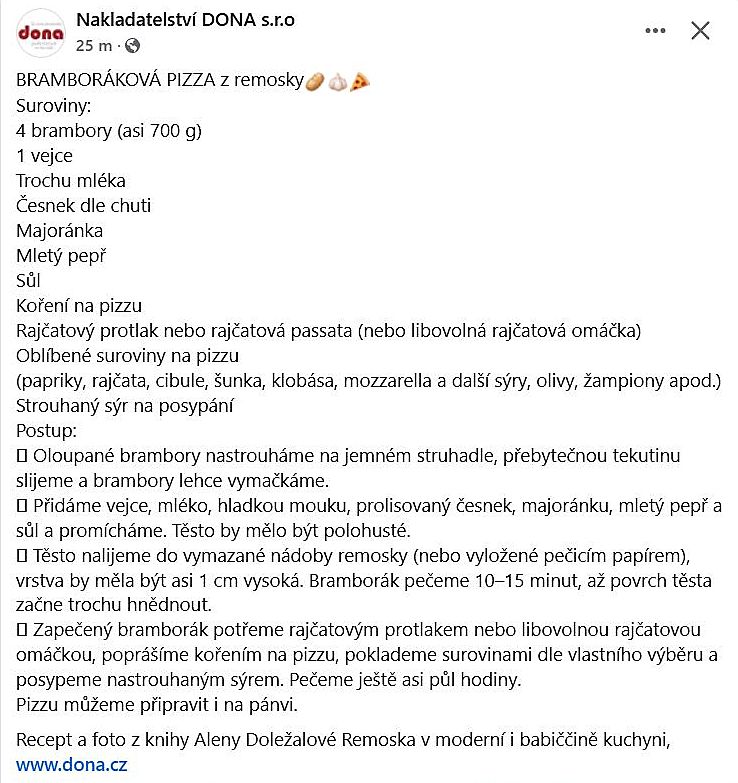 RECEPTY Z KUCHYNĚ: Bramboráková pizza