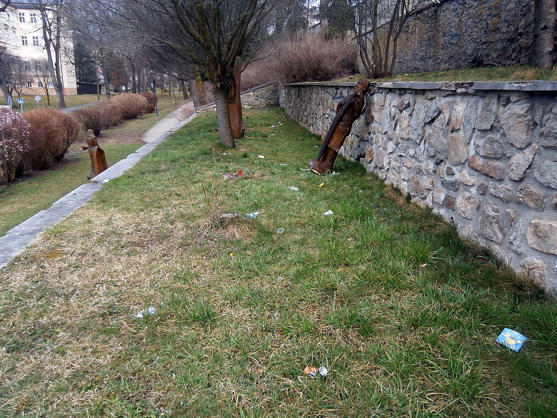 NAŠE MĚSTO VIMPERK: Poničené sochy v parku čtyři dny poté