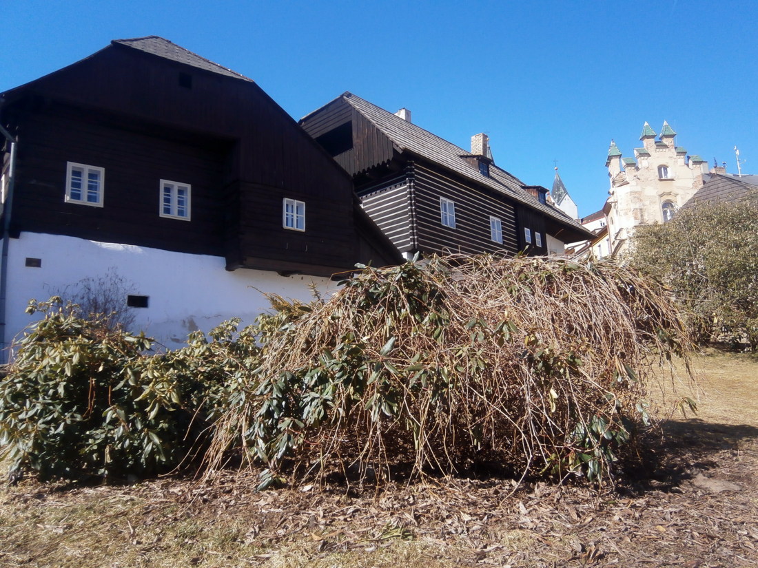 Dnes přinášíme snímek plevelem utiskovaného rododendronu na terasách pod srubovými domy. Názorná to ukázka péče radnice o veřejnou zeleň v centru města.