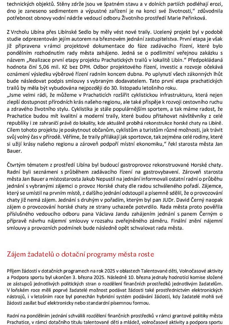 JIŽNÍ ČECHY: Co se děje v Prachaticích. Informace z jednání zastupitelů města – 6. března 2025