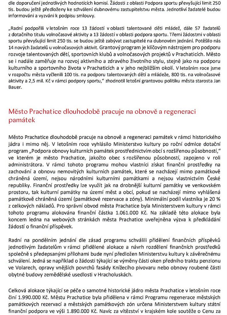 Domů ZPRÁVY Z MĚSTA A JIHU ČECH JIŽNÍ ČECHY: Co se děje v Prachaticích. Informace ze schůze městských radních