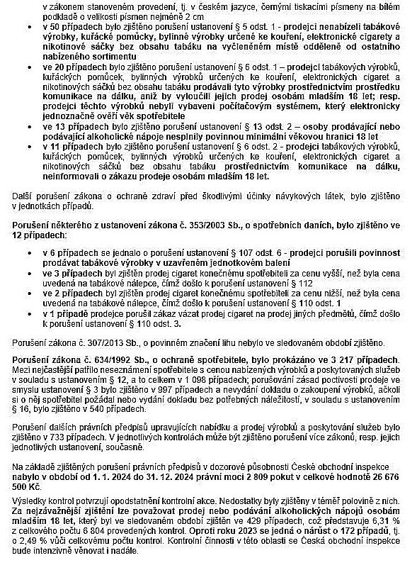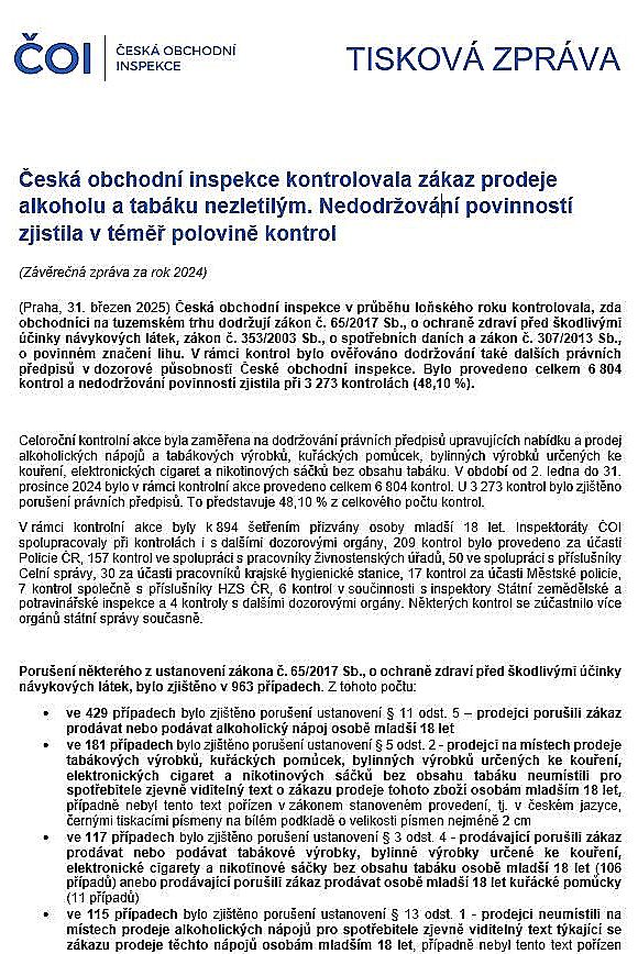 AKTUALITY: Česká obchodní inspekce kontrolovala zákaz prodeje alkoholu a tabáku nezletilým. Nedodržování povinností zjistila v téměř polovině kontrol