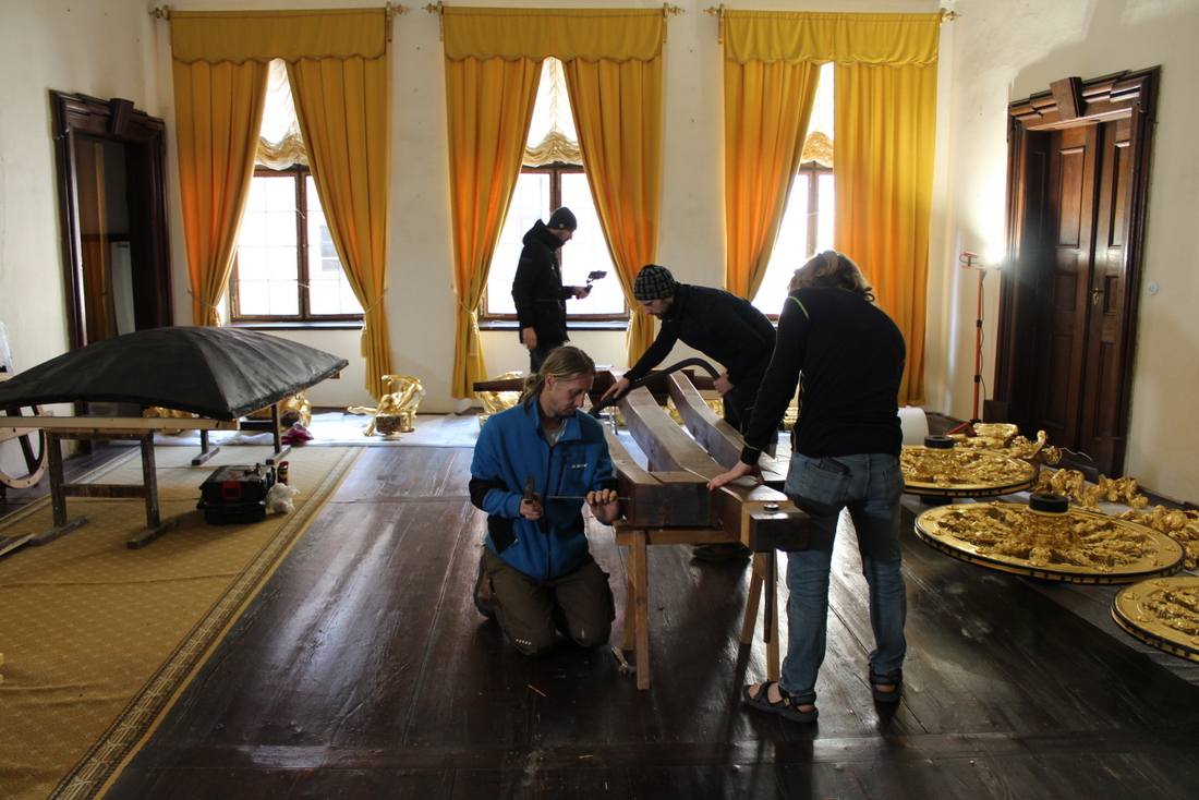 V Eggenberském sále českokrumlovského zámku bude mezitím proveden restaurátorský průzkum omítkových vrstev, který přinese nové poznatky o původní výzdobě těchto interiérů a povede k jejich obnovení.