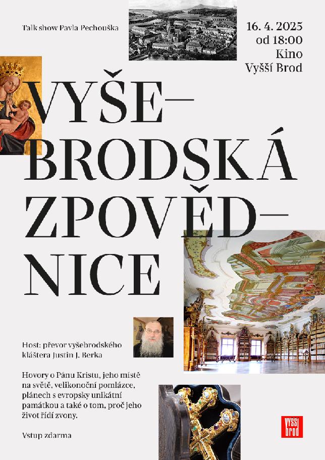 Převor bude také hostem nové talk show, ve vyšebrodském kinosále vystoupí 16. dubna v 18.00. Na akci, kde bude vyprávět nejen o plánech s klášterem, ale i o tom, proč si zvolil tuto Boží cestu, a ne nějakou mnohem jednodušší, je zvána široká veřejnost a organizuje ji zdejší Kulturně informační centrum. „Vyšší Brod je ideálním místem pro duchovní turistiku – klidné prostředí, historický klášter a bohatá tradice sem lákají návštěvníky hledající nejen poznání, ale i vnitřní ztišení. I proto plánujeme další díly Vyšebrodské zpovědnice, kde chceme přiblížit zajímavá témata spojená s historií a spiritualitou. Mezi další hosty chceme pozvat například archeologa Jiřího Šindeláře, který poodhalí skryté příběhy našeho regionu,“ uzavírá Michal Rolčík, který je vedoucím vyšebrodské kultury.