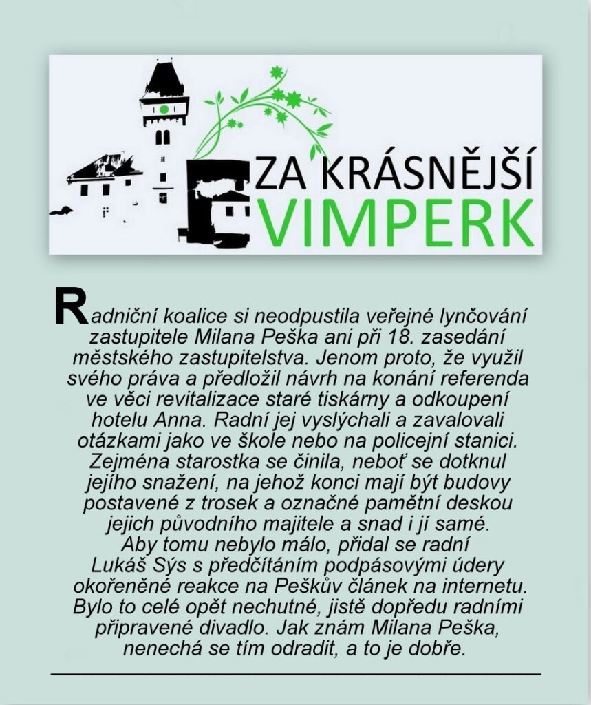 NAŠE MĚSTO VIMPERK: Glosa – Lynčování zastupitele Milana Peška