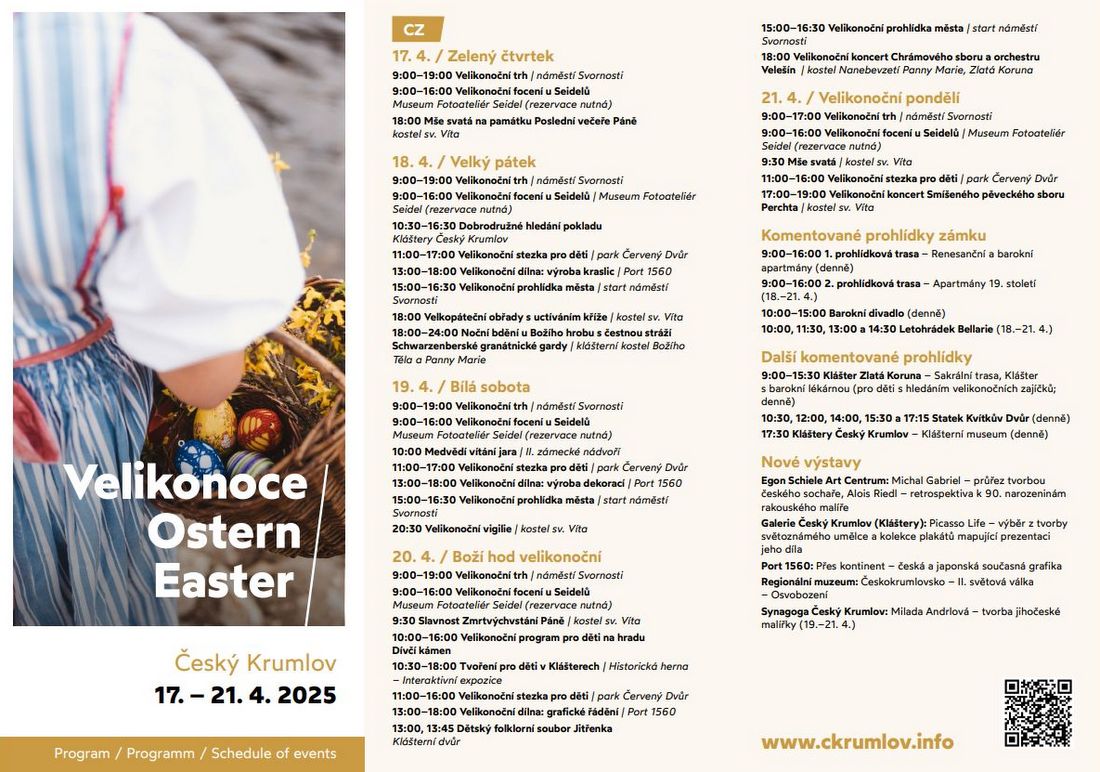 V Českém Krumlově se jaro neohlásí jen rozkvetlými stromy a zpěvem ptáků. Přichází s vůní čerstvě upečeného mazance, šustěním krojů, dětským smíchem i velikonočními koncerty. V centru města se tradiční velikonoční program proměňuje v živou oslavu – pestrou, tvořivou, duchovní i chutnou. Bohatá nabídka osloví každého – od rodin s dětmi přes milovníky folkloru až po gurmány.