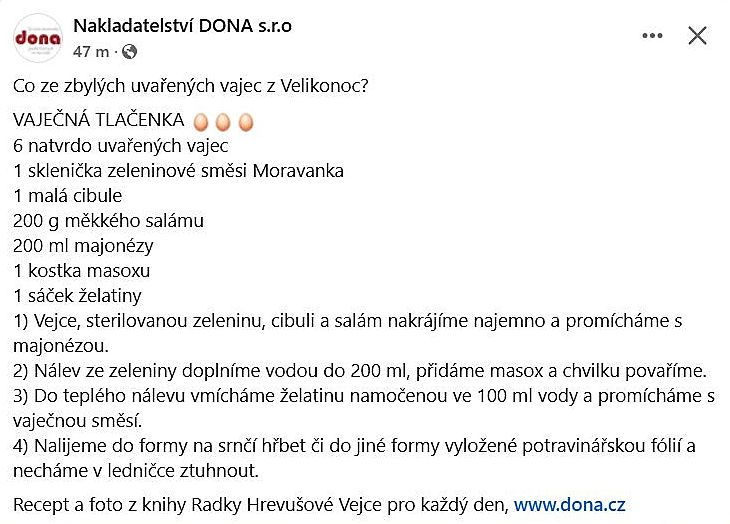 RECEPTY Z KUCHYNĚ: Vaječná tlačenka