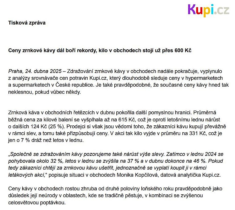 Z PRVNÍ RUKY: Ceny zrnkové kávy dál boří rekordy, kilo v obchodech stojí už přes 600 Kč