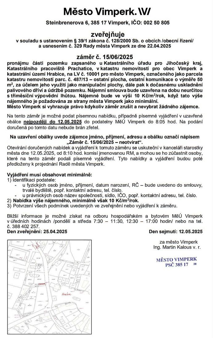 NAŠE MĚSTO VIMPERK: Úřední deska radnice – hospodaření s majetkem