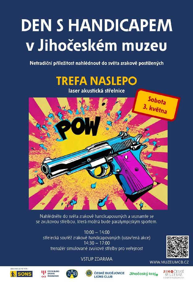 Sobota 3. 5. 2025 bude patřit zrakově handicapovaným. Jihočeské muzeum ve spolupráci s Lions Clubem České Budějovice a díky podpoře pracovníků Sjednocené organizace slabozrakých a nevidomých (SONS), Českého svazu zrakově postižených sportovců – ČSZPS, z. s. a TJ Zora Praha, z. s. – Nevidomí sportovci připravilo pro návštěvníky na sobotu 3. 5. 2025 netradiční sportovně – kulturně – společenskou akci pro zrakově handicapované i širokou veřejnost s možností nahlédnout do světa zrakově postižených.