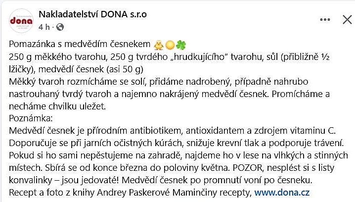 RECEPTY Z KUCHYNĚ: Pomazánka s medvědím česnekem