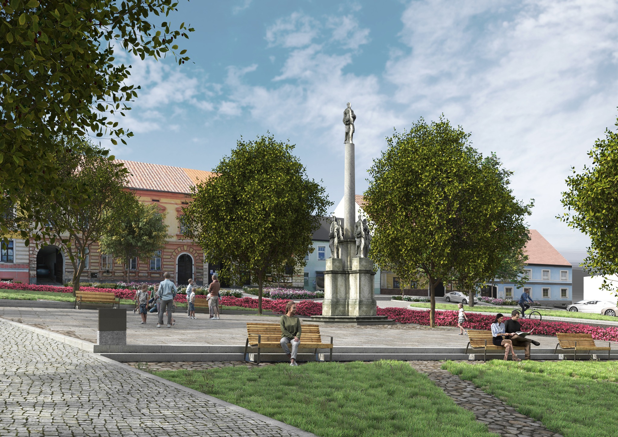 V první etapě bude uzavřená část náměstí od budovy č.p. 41 městského úřadu směrem ke knihovně a zdravotnímu středisku, včetně centrální části ná městí v okolí mariánského sloupu až k objektu č.p. 34 (chovatelské – rybářské potřeby) v křižovatce s ul. Vimperskou.