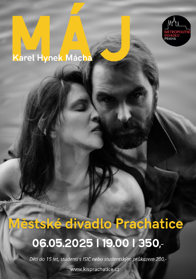 V úterý 6. května od 19 hodin uvede Metropolitní divadlo Praha v Městském divadle Prachatice inscenaci MÁJ, inspirovanou nesmrtelným dílem Karla Hynka Máchy.