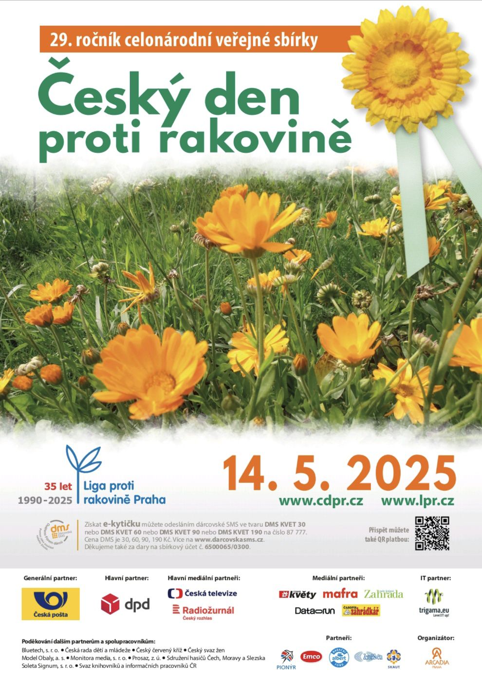 - Dárcovskou SMS ve tvaru DMS KVET 30 nebo 60 nebo 90 nebo 190 na číslo 87 777. Za každou DMS obdrží dárce tzv. e-kytičku. Liga podle zvolené částky obdrží 29, 59, 89, 189 Kč. Více informací: www.cdpr.cz/dms