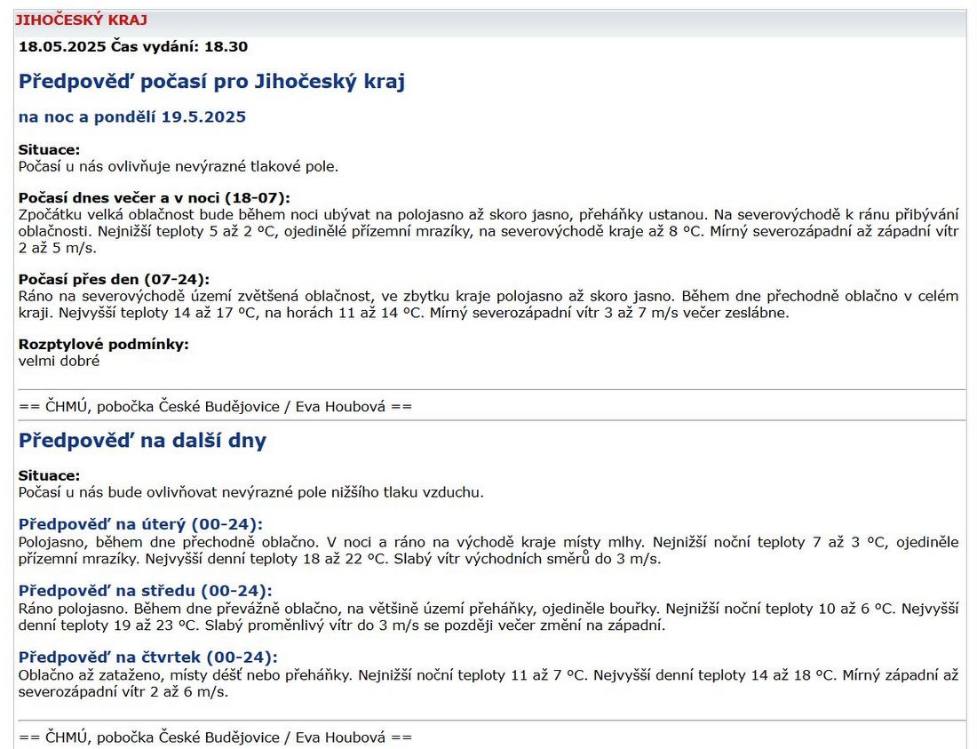 ČESKÝ HYDROMETEOROLOGICKÝ ÚSTAV: Předpověď počasí – 19. května 2025